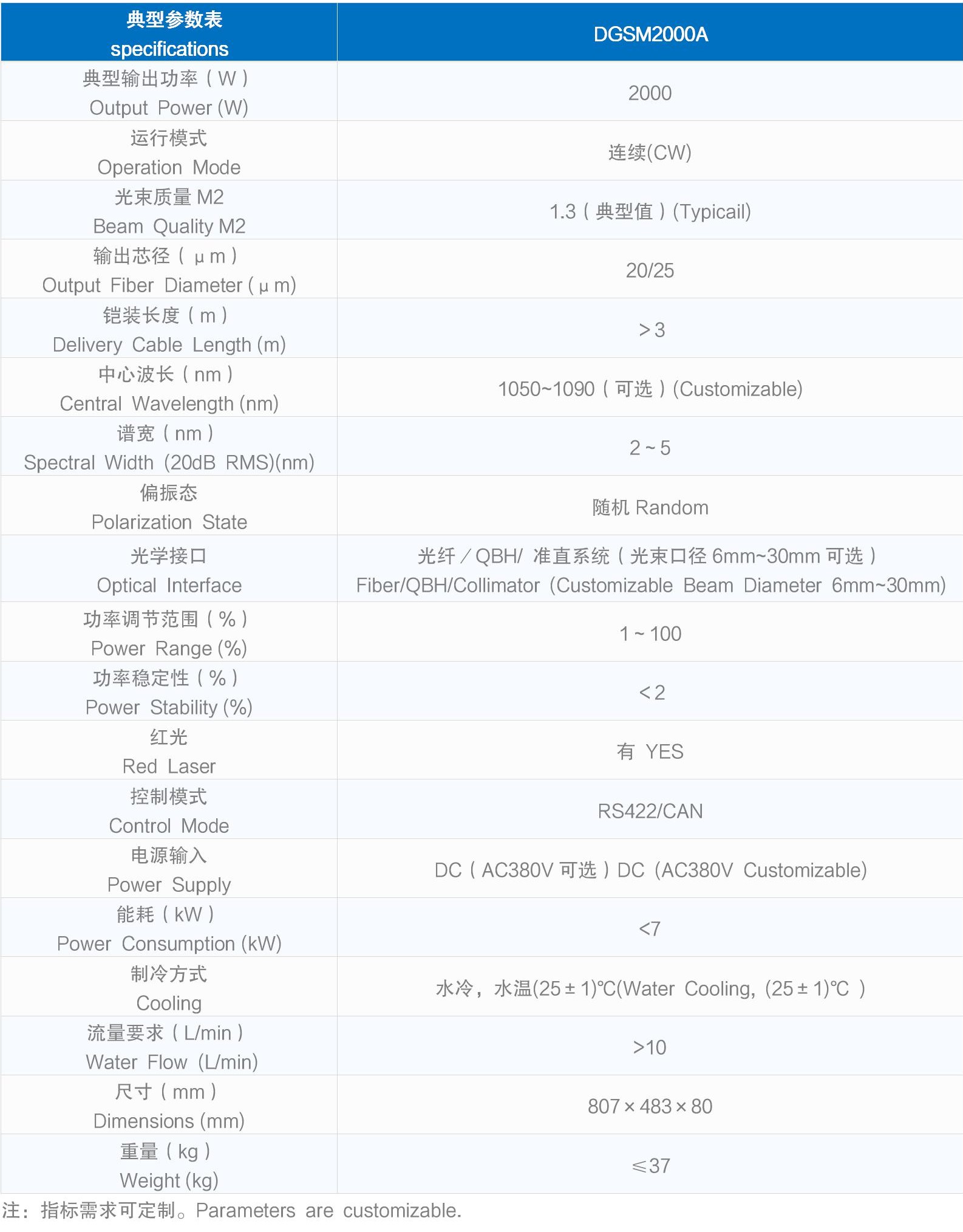 光學(xué)接口 Optical Interface | 光纖/QBH/ 準(zhǔn)直系統(tǒng)(光束口徑6mm~30mm可選) Fiber/QBH/Collimator (Customizable Beam Diameter 6mm~30mm) | |
